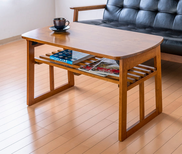 高さ50cmの便利な折りたたみテーブル。和室でも使える畳を傷つけにくい脚底仕上げです。