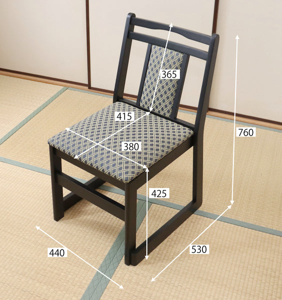 カラー: 天板=黒木目, 脚部=ブラック,椅子座面=和風格子柄,フレーム=ブラック